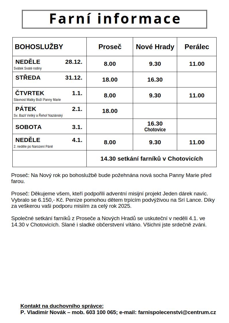 Ohlášky 28.12.2025 - 4.1.2026
