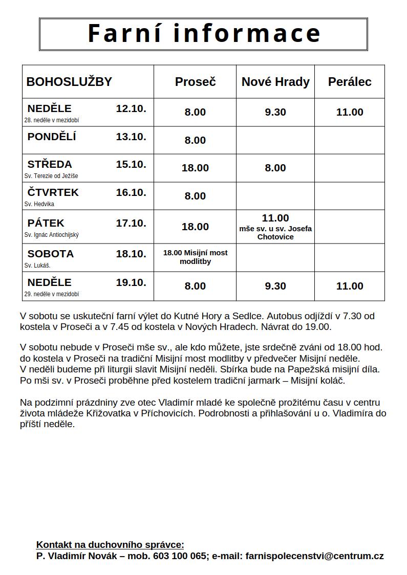 Ohlášky 12.10.2025 - 19.10.2025